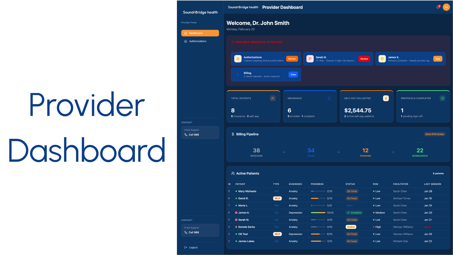 The homepage allows new patients, facilitator training application, facilitator access and provider (and staff) access.Ā